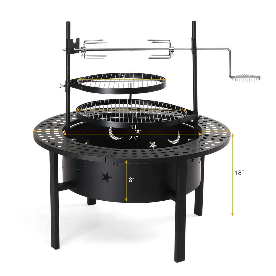 Brasero para Exteriores de 33 Pulgadas con 2 Parrillas Giratorias Extraíbles para Cocinar con Leña, para Patio Trasero o Terraza, 2 Parrillas de Cocción
