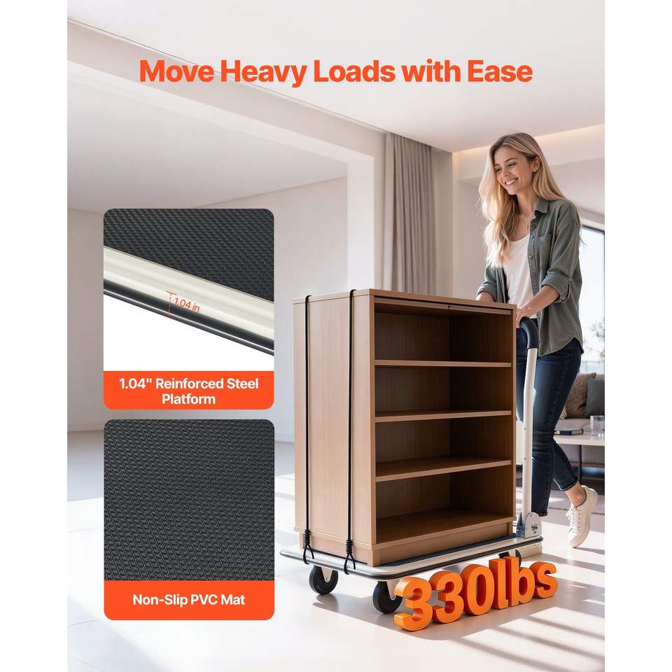 Carretilla Plegable con Capacidad de Carga de 330 Libras, Plataforma Plegable con Ruedas Giratorias, Carretilla de Mano y Carretillas con Plataforma Plana
