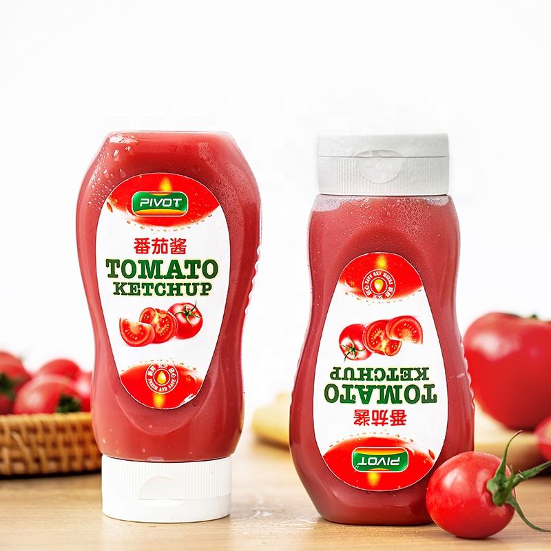 Botella de plástico redonda de 330 ml apta para alimentos, para aderezos, salsa, kétchup, jarabe para la tos, botella exprimible de plástico para chile con boquilla
