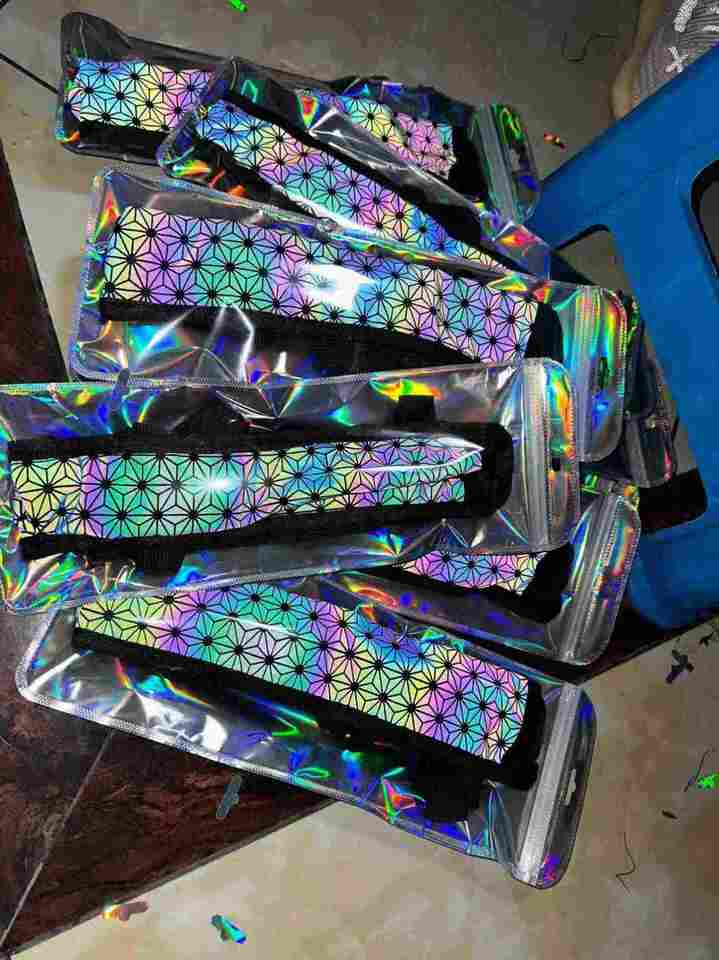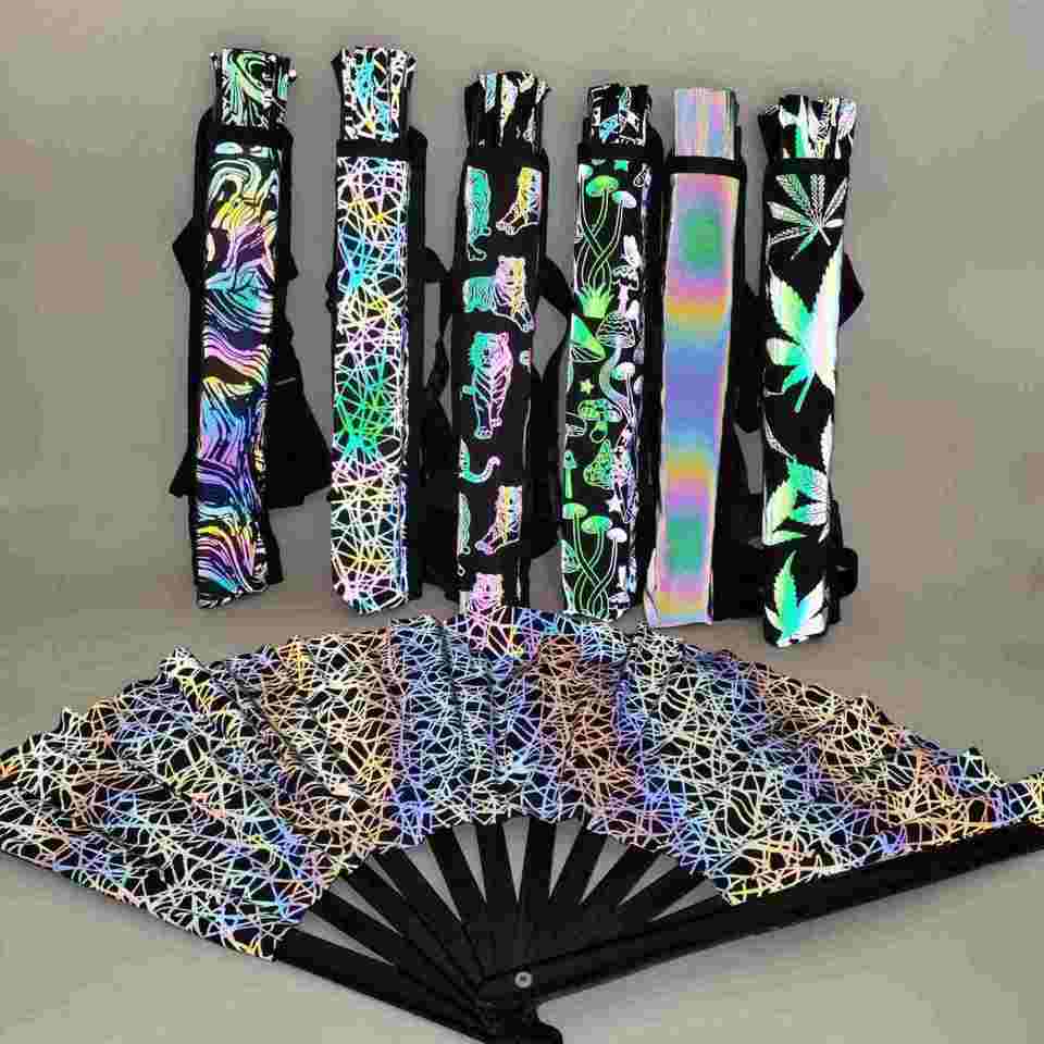 Ventilador de Mano Reflectante Grande de 33 cm (13 Pulgadas) con Funda, Accesorios para Fiestas Rave, Tela Brillante de Poliéster, Logotipo Personalizado, Portátil