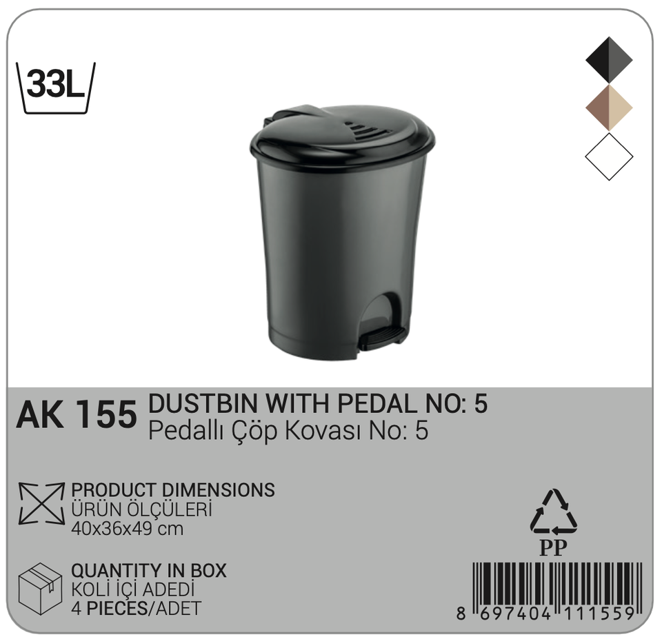 Cubo de basura con Pedal negro de 33L, fácil limpieza, plástico compacto, PP, hogar, oficina, cocina, uso de gestión de residuos, Cubo de almacenamiento