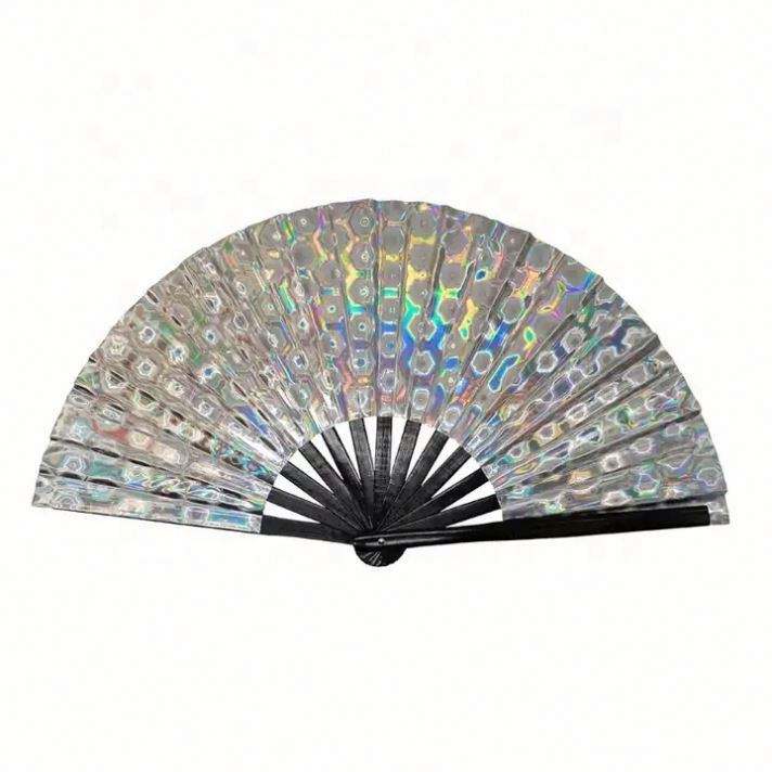 Ventilador de Mano Plegable Holográfico de 33 cm con Diseño de Hada, Portátil, para Fiestas, Multicolor, para Uso en Festivales
