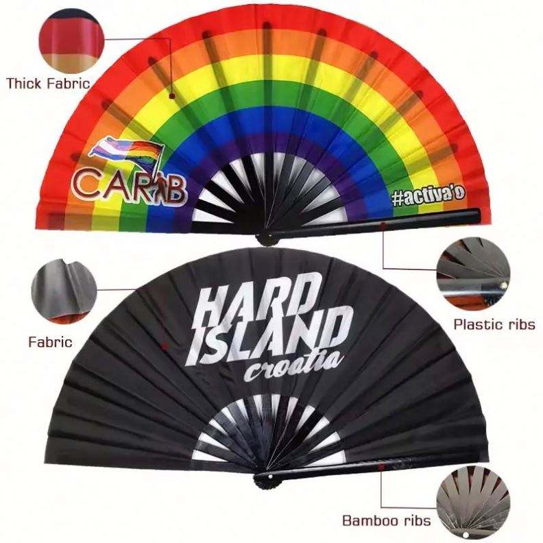 Abanico Plegable de Plástico Grande y Colorido de 33 cm, Personalizado, Abanicos de Kung Fu para Festivales, Baile y Regalos