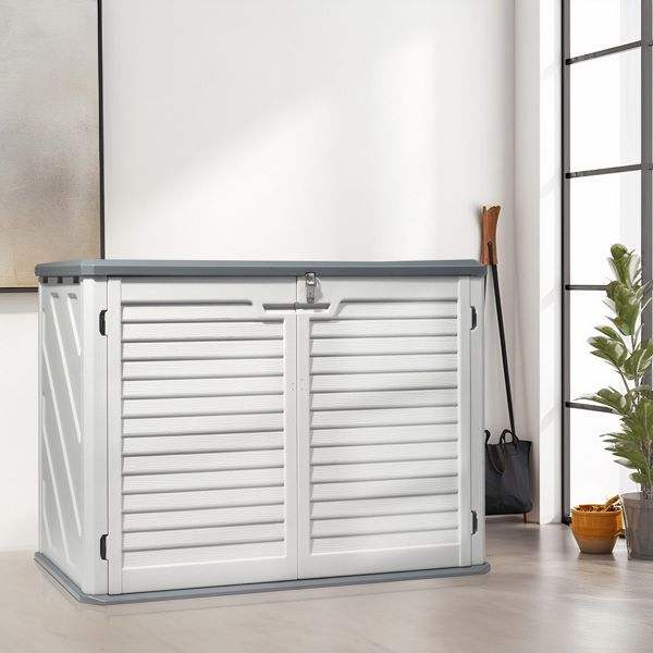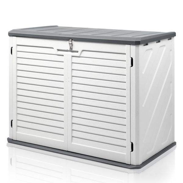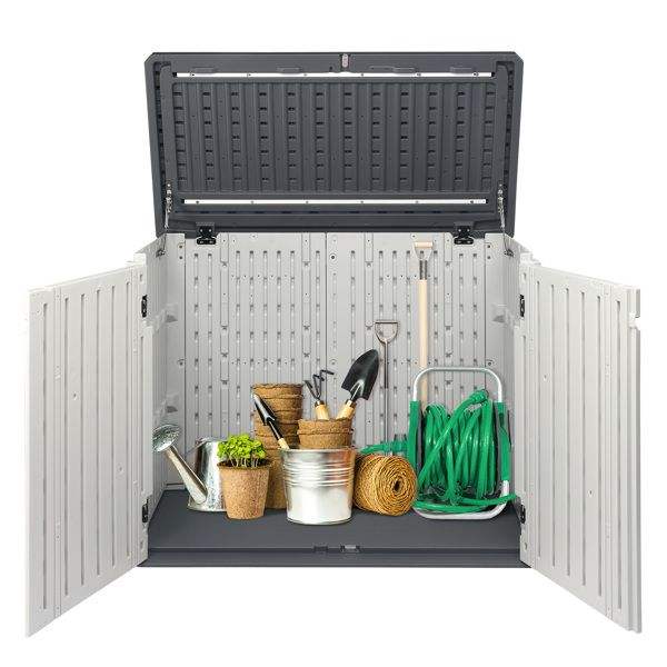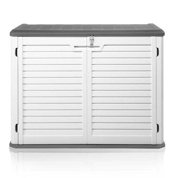 Caseta de Almacenamiento Exterior con Cerradura de 34 Pies Cúbicos, Diseño de Gabinete Horizontal con Espacio para Contenedores de Basura, Cortacésped y Otros Artículos de Almacenamiento Exterior