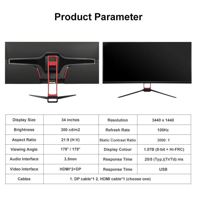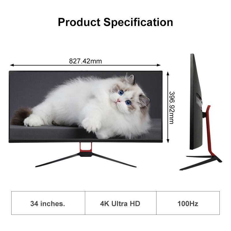 Monitor 4K de 34 pulgadas para PC, frecuencia de actualización de 100Hz, Monitor de PC curvo 3440*1440 para juegos de oficina de escritorio