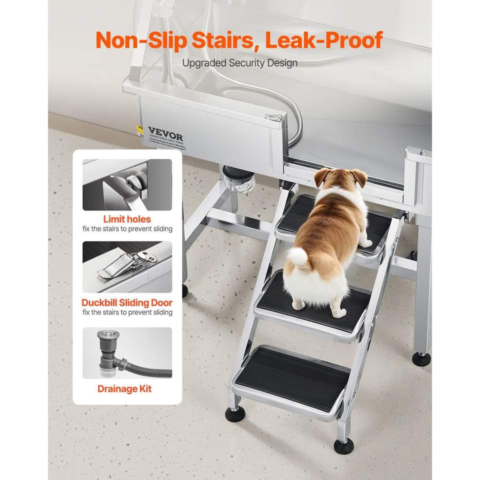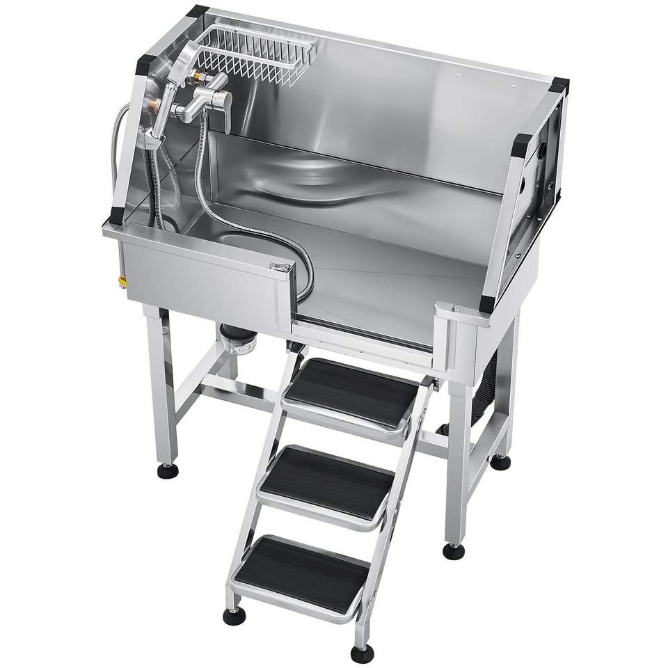 Estación de Lavado para Perros de 34 Pulgadas de Acero Inoxidable para Mascotas Pequeñas, Uso Doméstico, Fregadero para Aseo de Mascotas con Grifo de Agua Fría y Caliente y Cabezal de Ducha