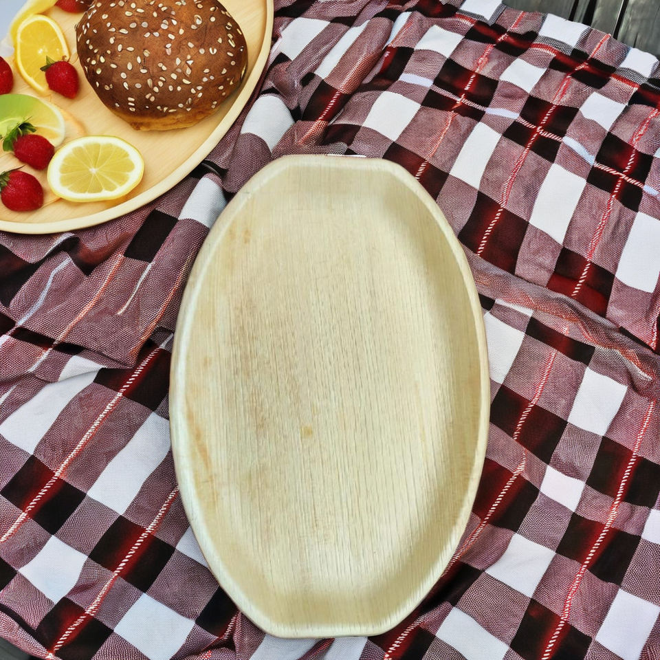 Platos de hoja de palma ovalados desechables ecológicos de 34CM, vajilla sostenible biodegradable y compostable para acampar