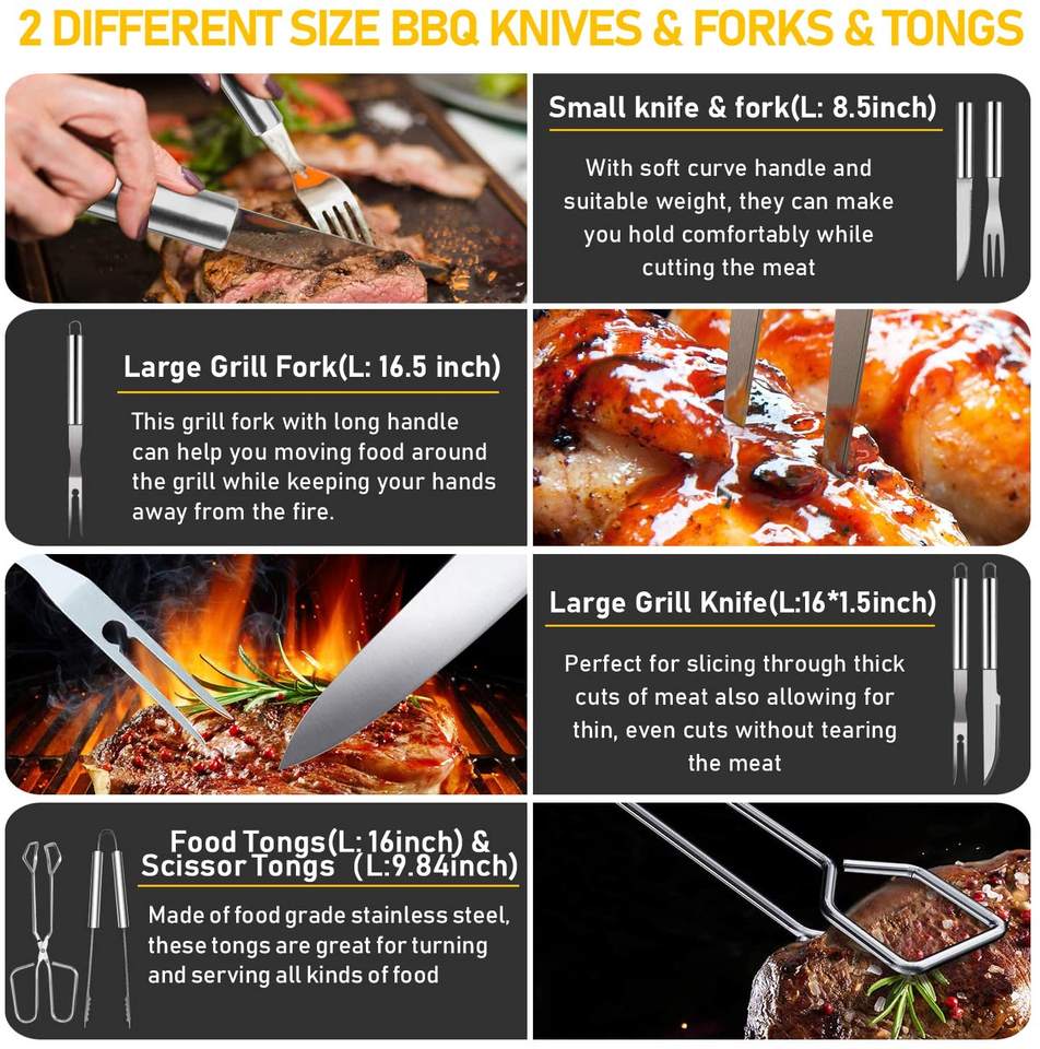 Juego de Herramientas de barbacoa de acero inoxidable, herramientas profesionales para asar, jardín, 34 Uds.