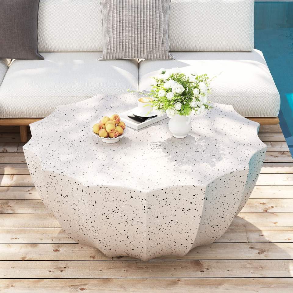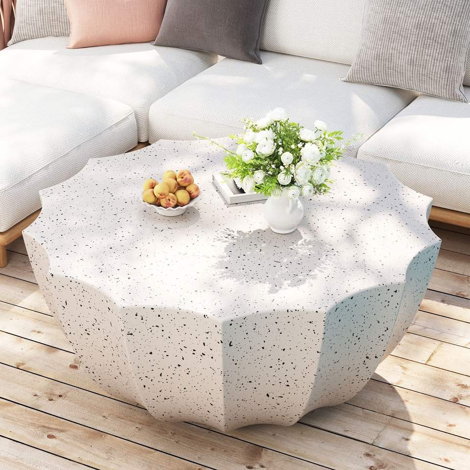 Mesa de Centro Moderna de 35.43 Pulgadas, Diseño Duradero de Cemento MgO, Resistente al Agua para Interiores y Exteriores, Ideal para Terrazas, Jardines y Patios