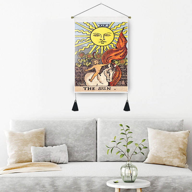 Estatua de Buda personalizada de 35x50cm, tapiz de Tarot, decoración nórdica para el hogar, algodón, lino, borla, palo de dormitorio, pintura artística colgante de pared
