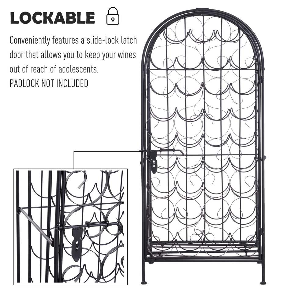 Mueble para Botellas de Vino de Hierro Forjado con Capacidad para 35 Botellas, con Cerradura y Acabado Negro