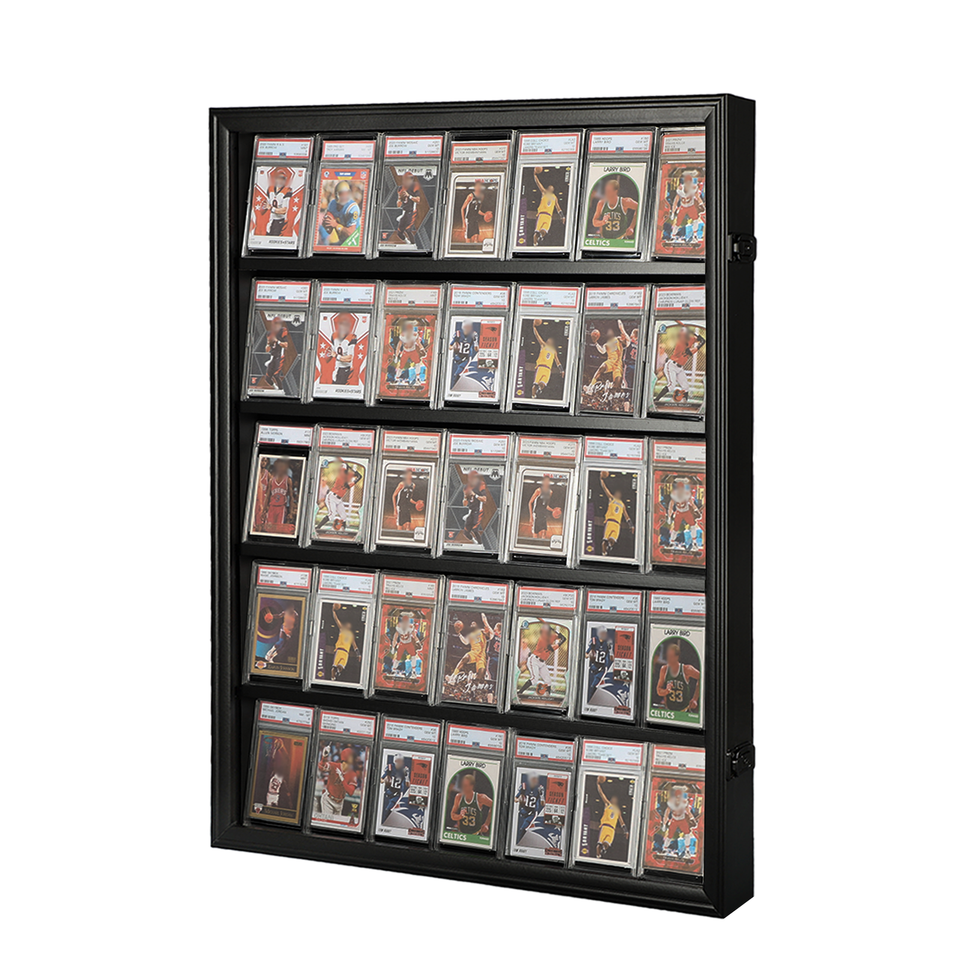 Gabinete de pared vertical con marco de exhibición de tarjetas deportivas graduadas de 35 con caja de sombra bloqueable para colección de tarjetas de béisbol