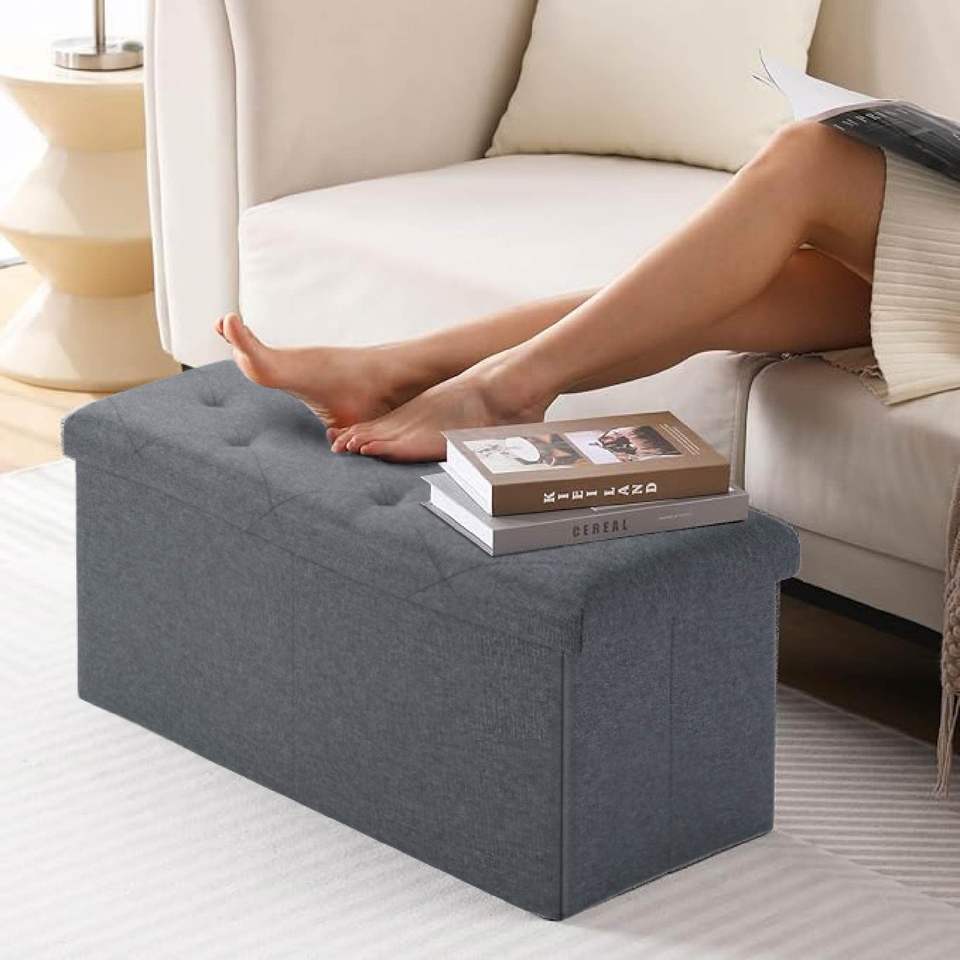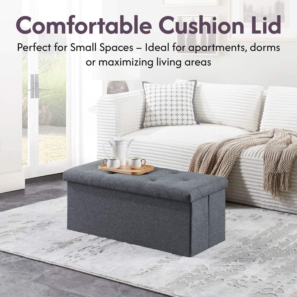 Banco Otomano Plegable de 35 Pulgadas con Almacenamiento para Sala de Estar y Dormitorio, Reposapiés para Entrada y Pie de Cama, Baúl de Almacenamiento