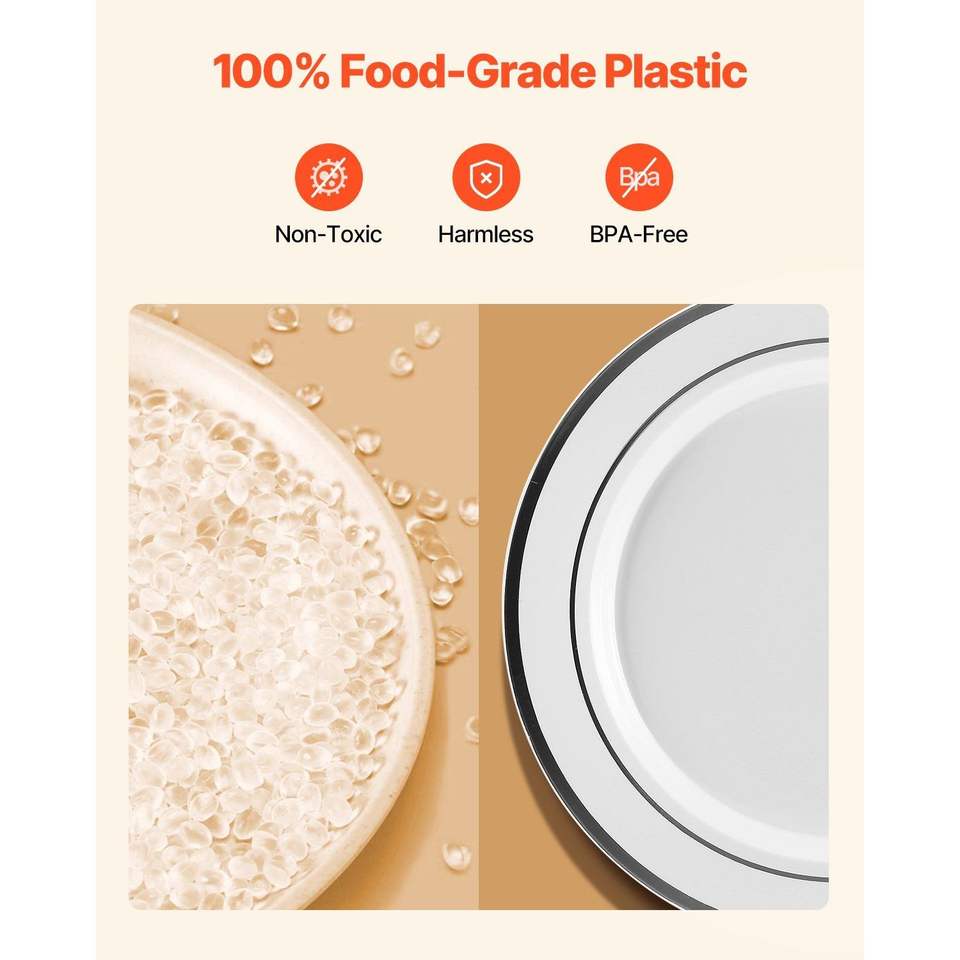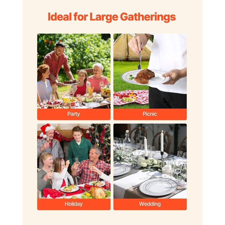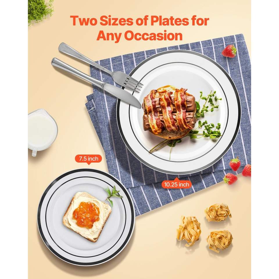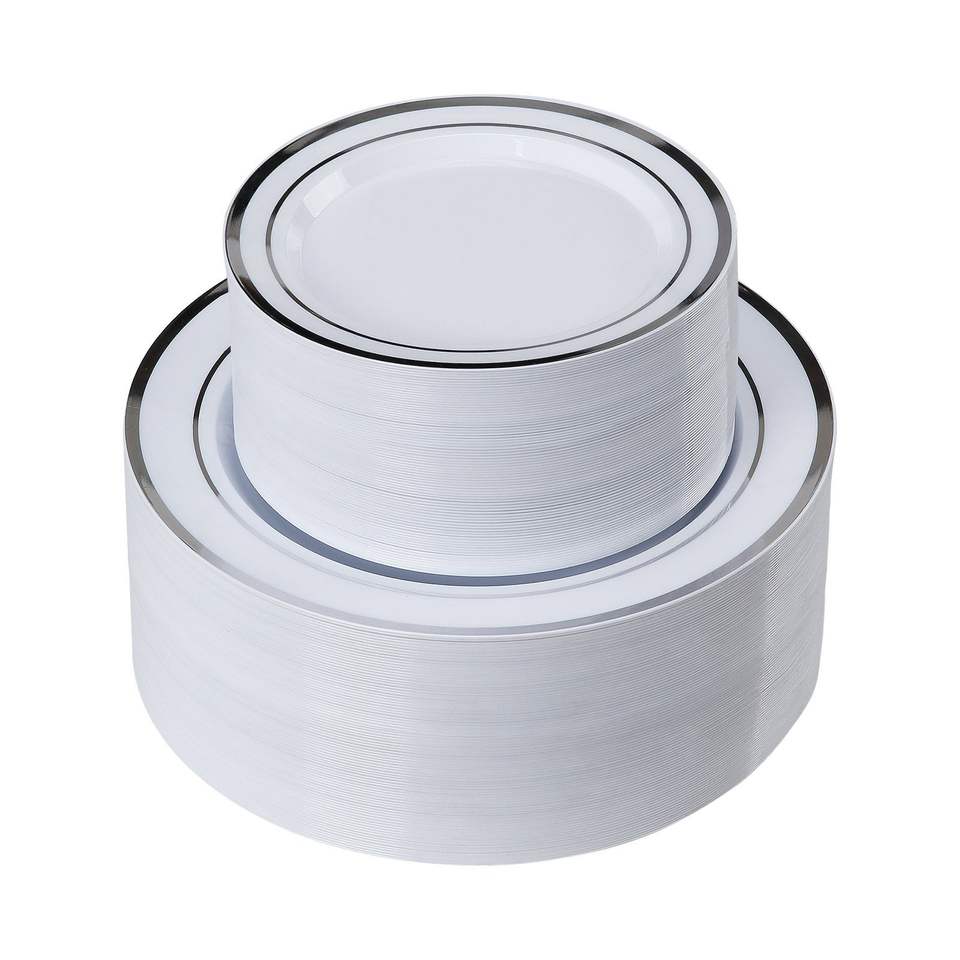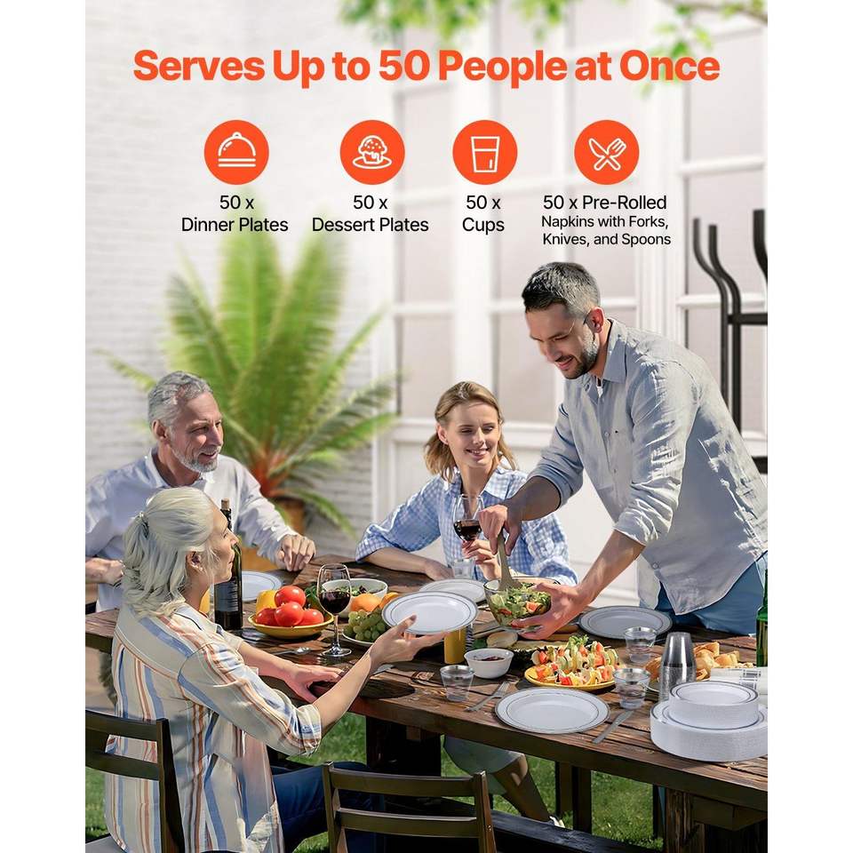 Juego de Vajilla Desechable de Plástico de 350 Piezas, Incluye 50 Platos para Cena, 50 Platos para Postre y 50 Servilletas Pre-Enrolladas para Fiestas