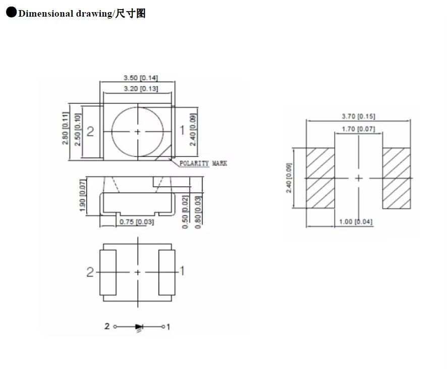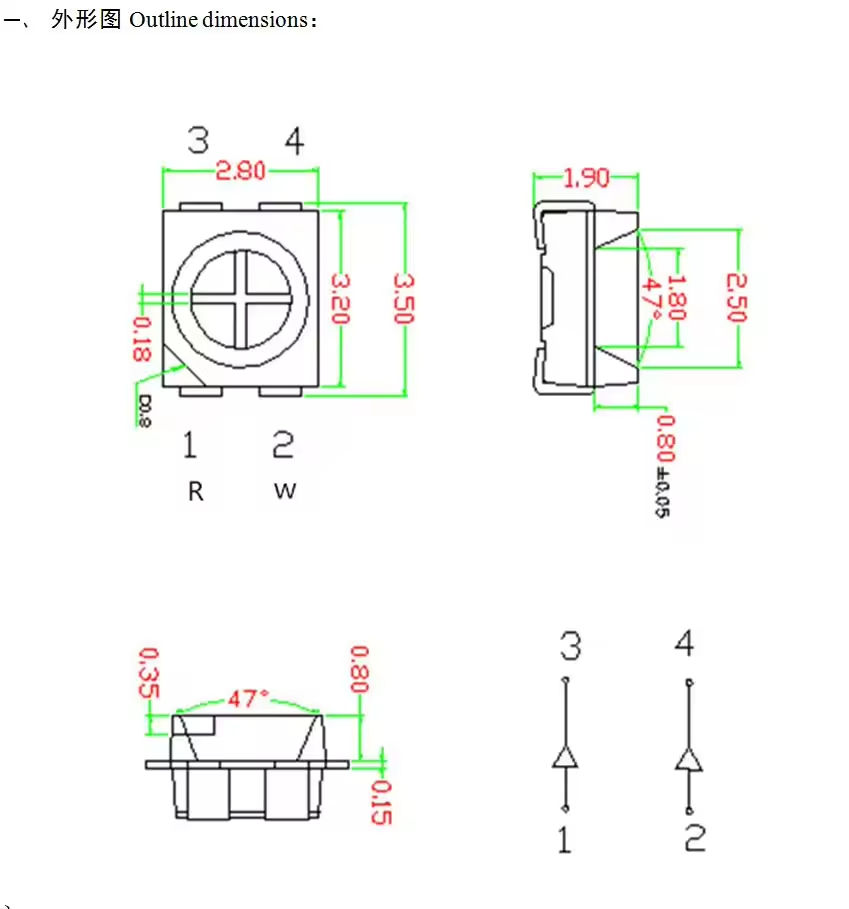 3528 polaridad inversa 0,06 W 2V rojo 620-630nm 400-600mcd diodo Chip SMD LED