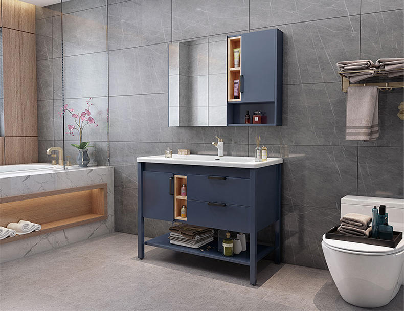 35in azul oscuro país rural vanidad con almacenamiento espejo barato impermeable muebles de baño de pared Gabinete de la vanidad