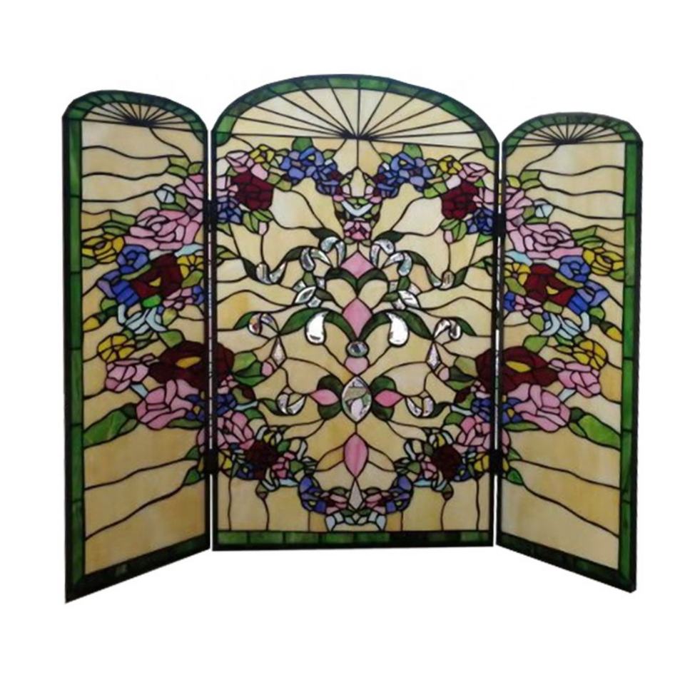 Paravientos de Chimenea Tiffany de Vidrio Artístico Teñido con Diseño Floral Hecho a Mano de Estilo Europeo de 36''*28''