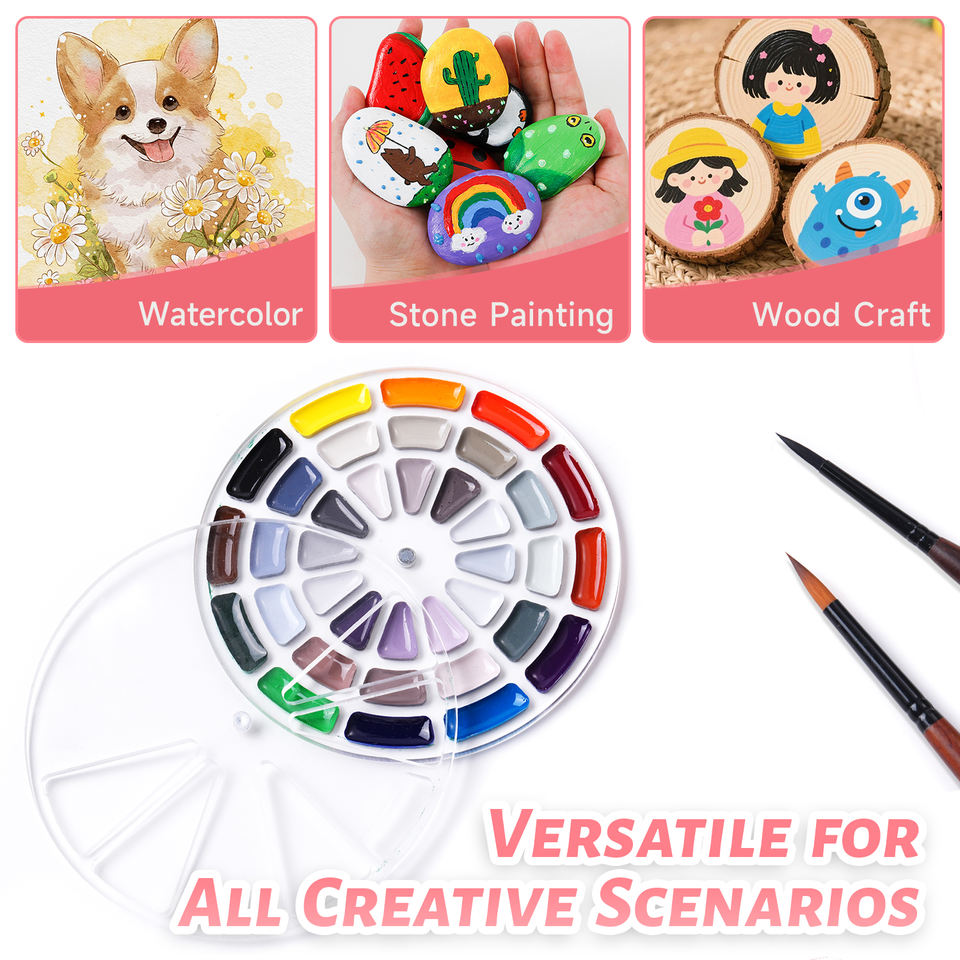 Set de Pintura de Acuarela de 36 Colores, Paleta Portátil Redonda Sólida con 360 Unidades ° Tapa giratoria para artistas, principiantes y aficionados