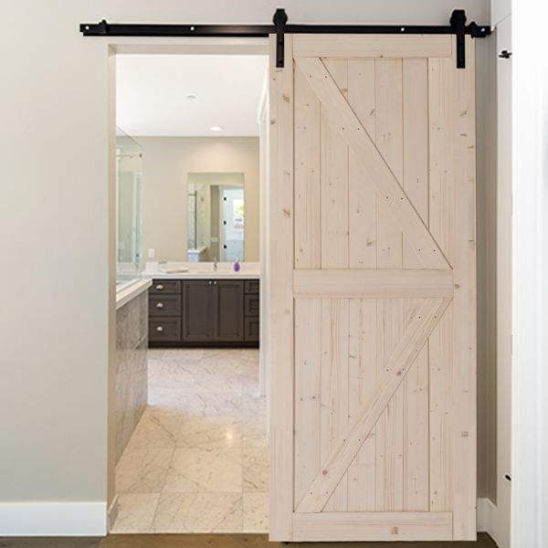 36 Pulgadas X 84 Pulgadas Puerta Corredera de Madera de Abeto Sólido sin Acabado con Marco en K, Requiere un Fácil Montaje DIY