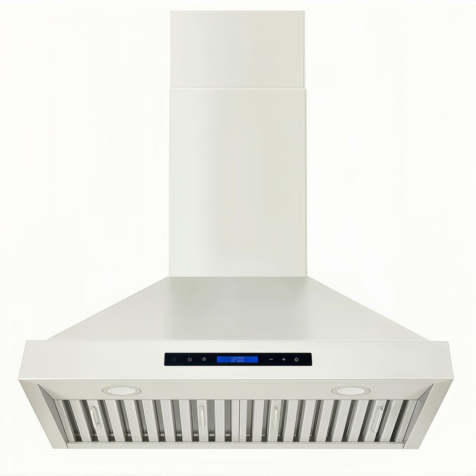 Campana Extractora de Cocina de 36 Pulgadas y 900 CFM con Ventilación para Uso Doméstico y Hotelero, Motor Ultra Silencioso, Control Remoto, Filtro de Deflector en Acero Inoxidable Blanco