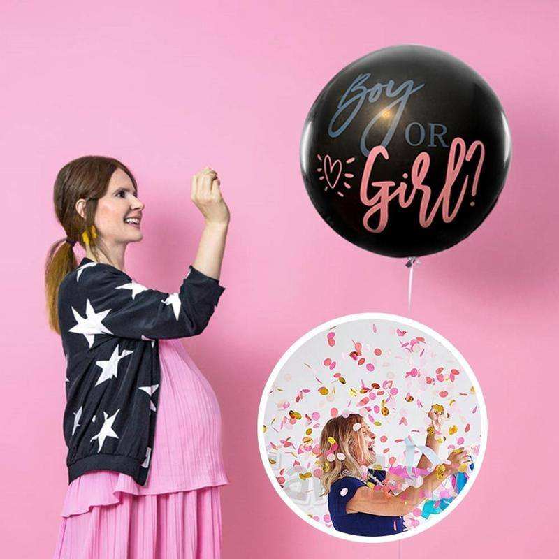 Globos Negros de 36 Pulgadas para Revelación de Género, Globo de Revelación de Género con Confeti Rosa, Suministros para Fiesta de Revelación de Género de Niño o Niña