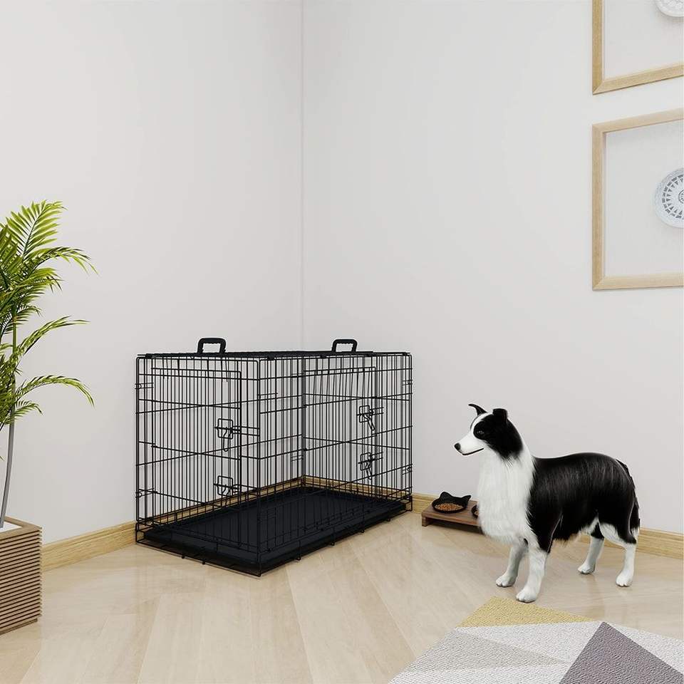 Jaula para Perros de 36 Pulgadas con Mecanismo de Doble Cierre, Dos Puertas y Dos Asas, Jaula para Mascotas con Doble Cerrojo