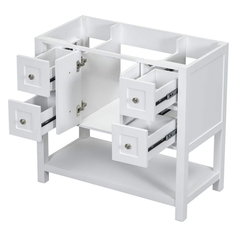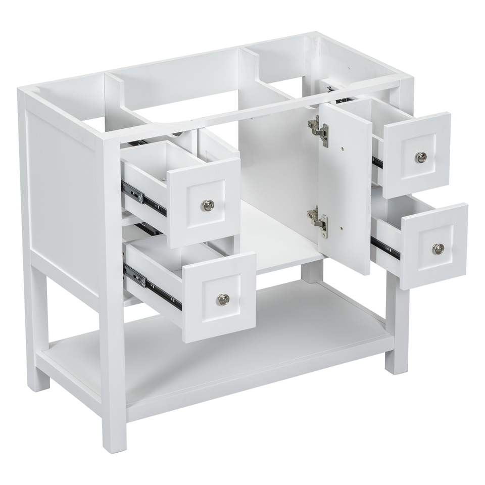 Mueble de Baño Independiente de Madera Maciza de 36 Pulgadas Sin Lavabo, 4 Cajones con Cierre Suave y Almacenamiento, Elegante Juego de Almacenamiento