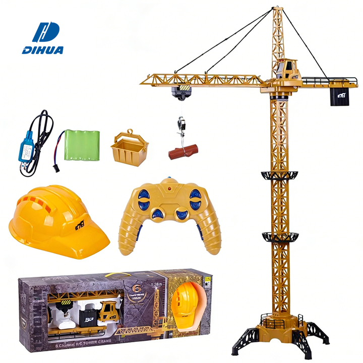 Juguete de grúa torre de 36 pulgadas de altura y 6 canales para niños, modelo de grúa de construcción con Control remoto de 2,4 GHz con casco de seguridad, juego de construcción interior