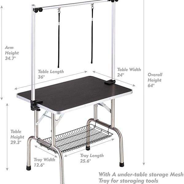 Mesa de Peluquería Profesional para Perros de 36 Pulgadas, Resistente y Portátil, con Brazo Ajustable y Bandeja de Malla