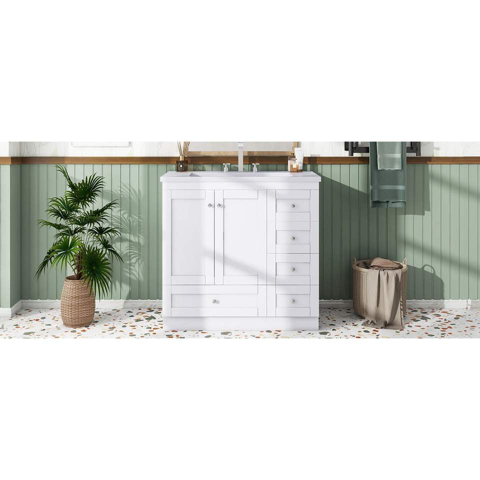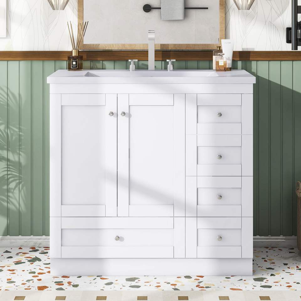 Mueble de Baño Independiente Estilo Shaker de 36 Pulgadas con Lavabo, 4 Cajones con Cierre Suave y 2 Puertas con Cierre Suave
