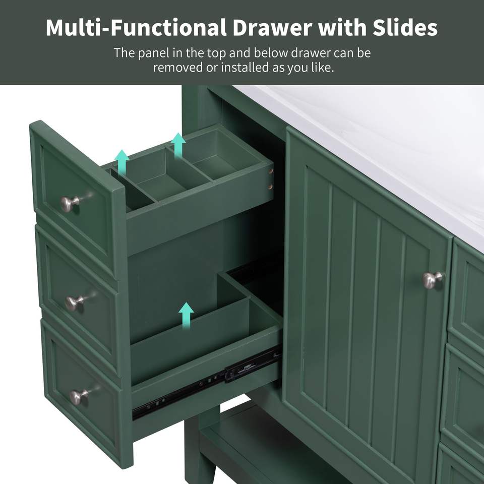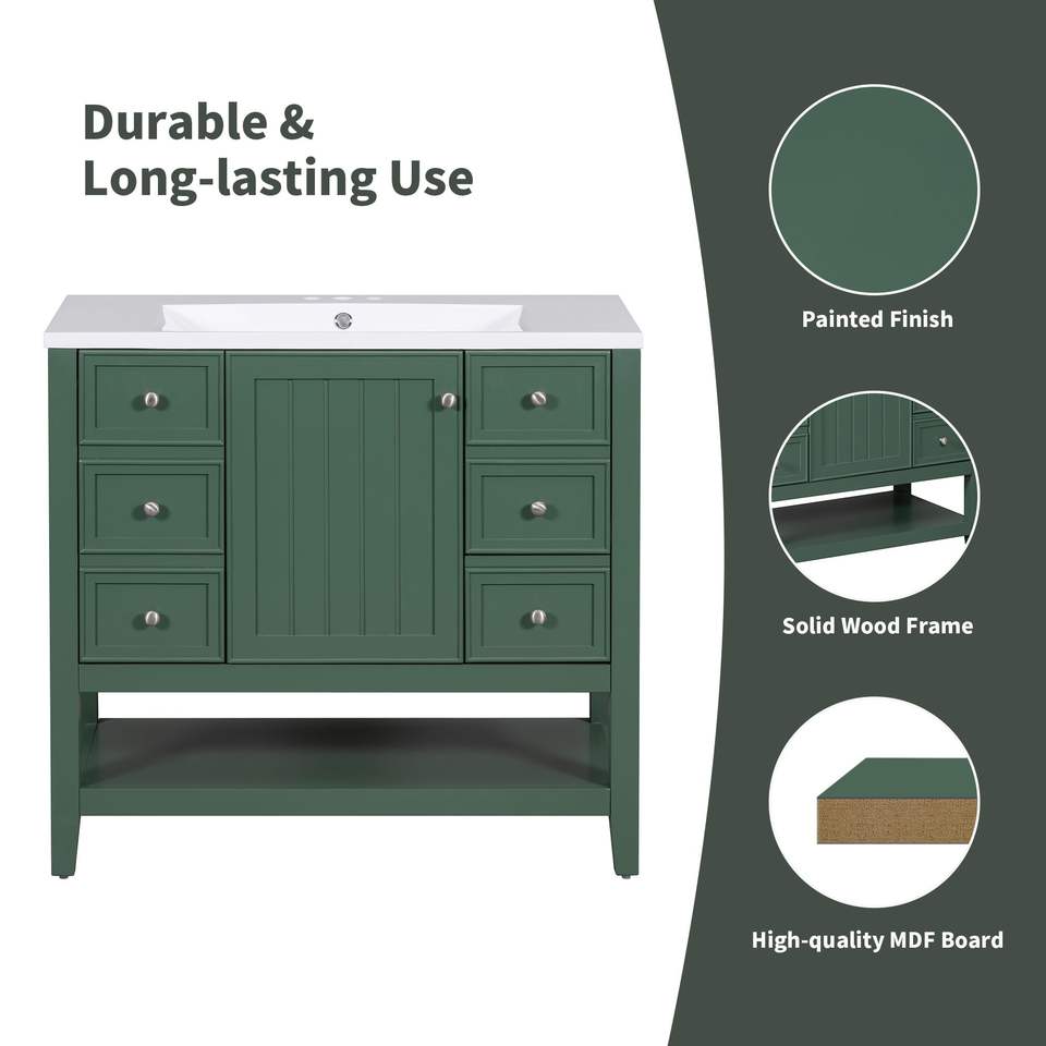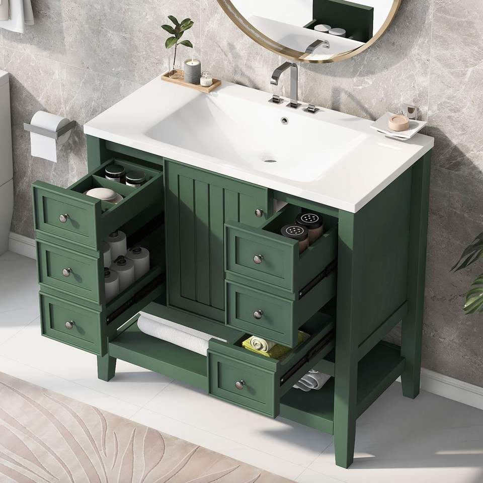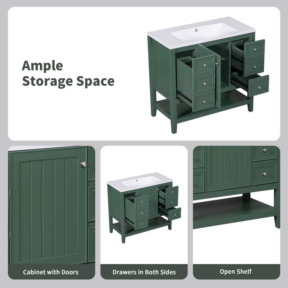 Mueble de Baño de 36 Pulgadas de Madera Maciza y Tablero MDF con Lavabo, un Gabinete y Tres Cajones