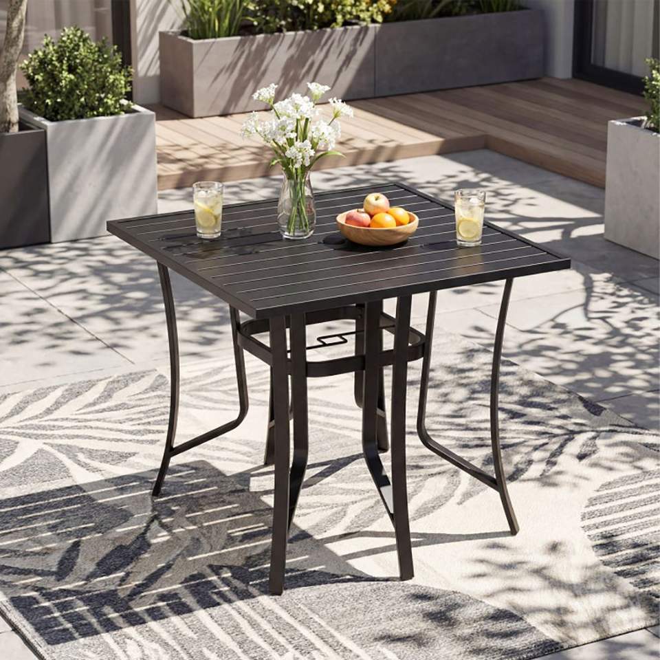 Mesa de Comedor Cuadrada de Metal para Exteriores de 36 Pulgadas con Orificio para Sombrilla, para 4 Personas, Muebles de Patio