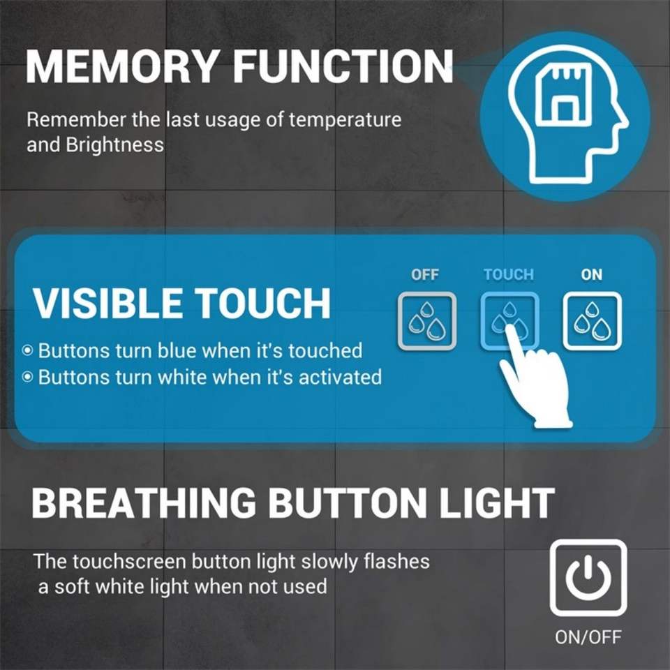 Espejo LED de Baño de 36 x 28 Pulgadas para Montar en la Pared, Luz Frontal Brillante Full HD, Antivaho de 5 Minutos, 3 Colores Atenuables, No se Puede Enviar