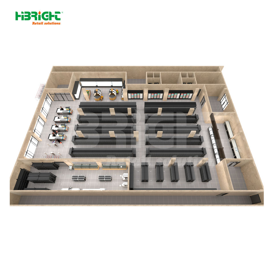 360 ° Diseño 3D de la Tienda: Equipamiento Completo para Supermercados y Diseño de Estanterías