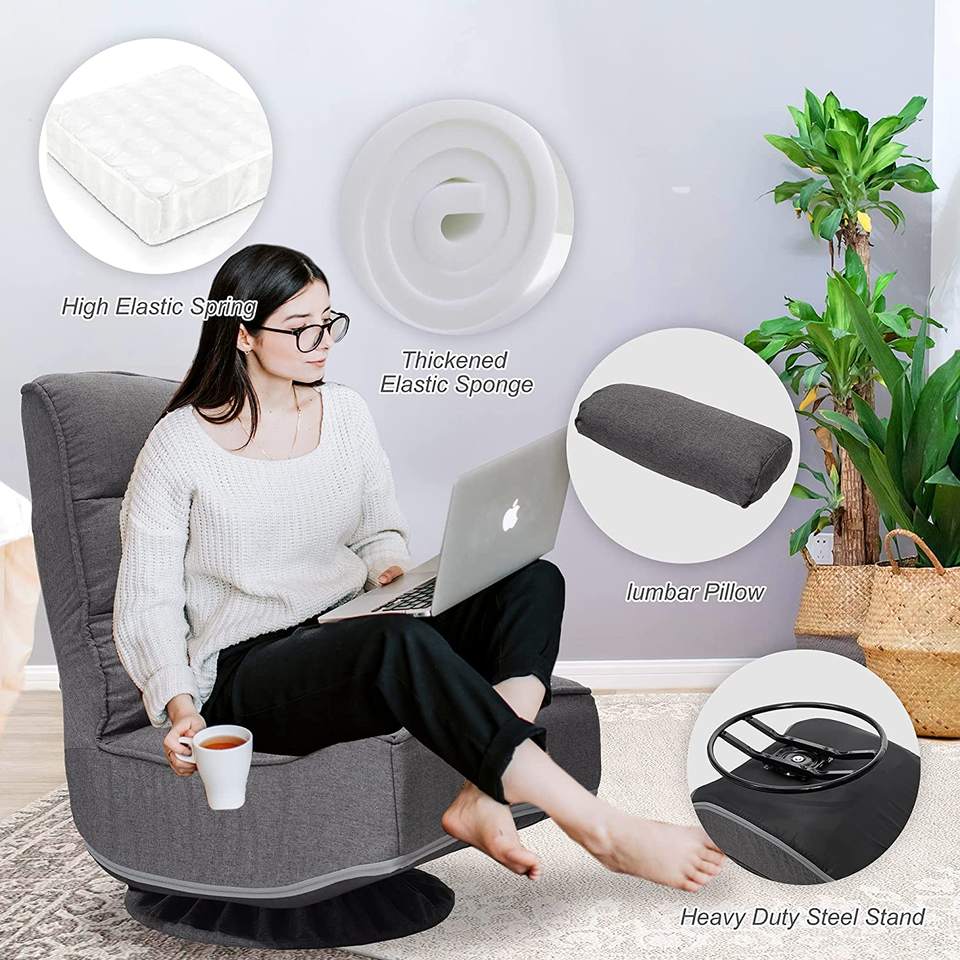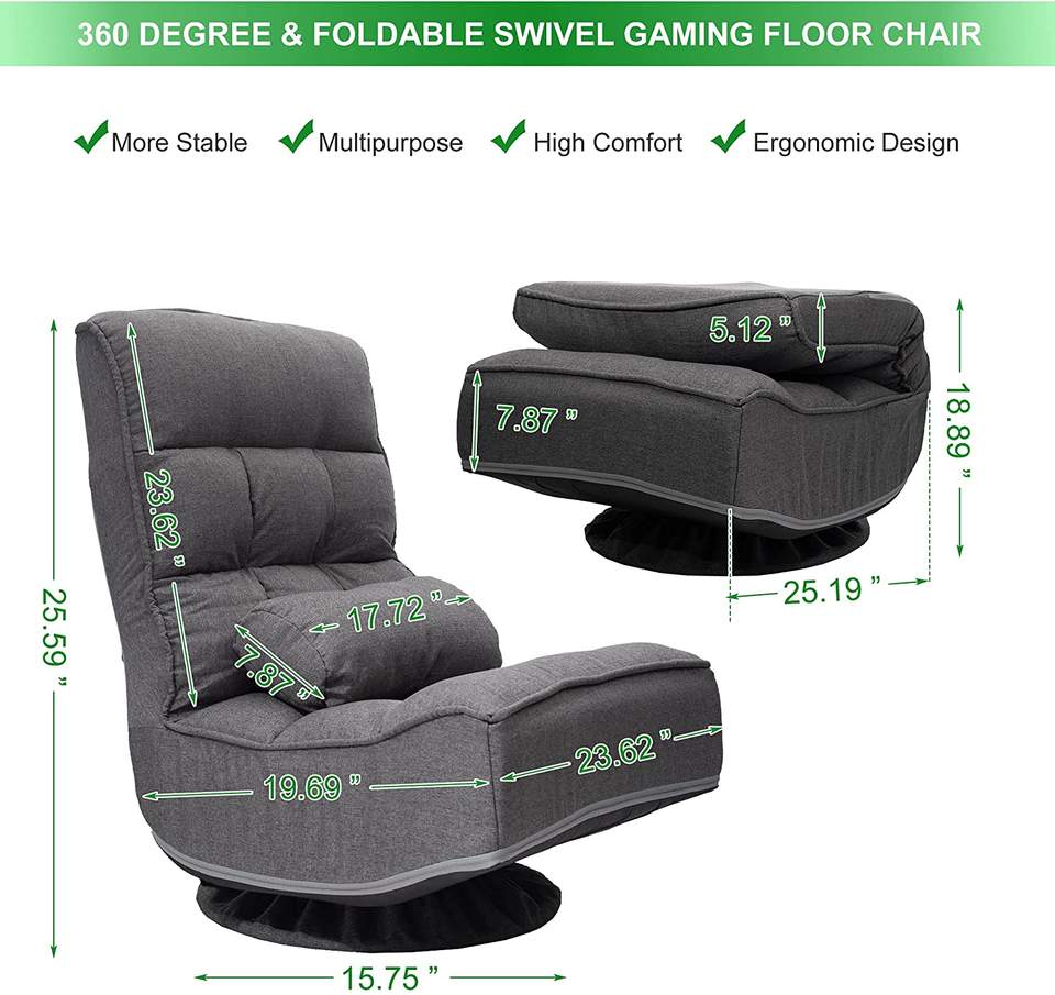Silla de salón plegable ajustable, sillón giratorio de 360 grados para juegos con almohada