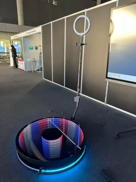 Cabina fotográfica 360° automática con cámara de video rotatoria en cámara lenta, para fiestas y registro/check-in, con control remoto y aplicación (APP)