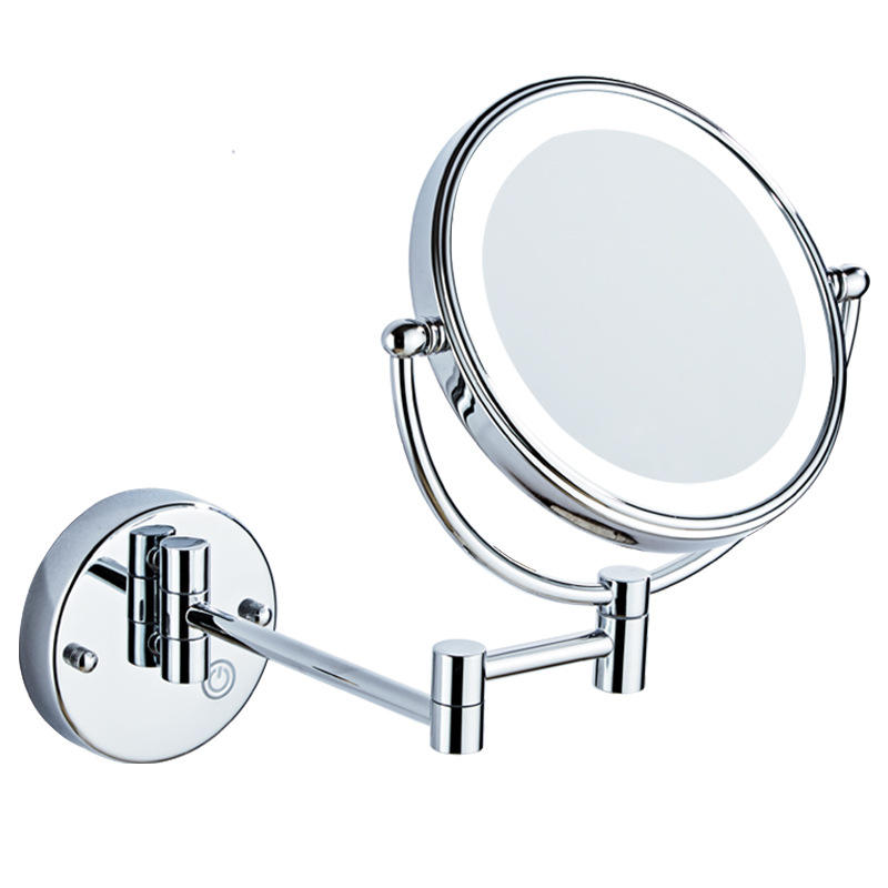 Espejo Cosmético de Pared Plegable con Rotación de 360 Grados, Espejo de Maquillaje Iluminado de Doble Cara