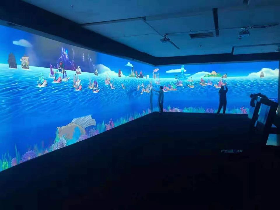 Proyección interactiva 360 en pared, mapeo de proyección inmersivo, realidad virtual para exposiciones de museo, proyección interactiva para acuario, 30 puntos táctiles
