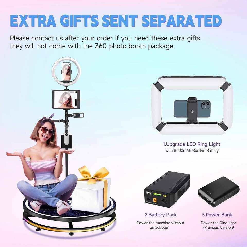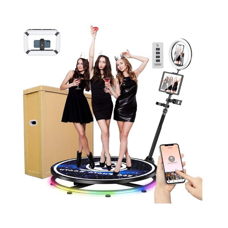 Cabina de Fotos 360 de 31.5'' con Carcasa de Panal + Anillo de Luz LED con Batería Adicional Gratis, Soporte y Logotipo Personalizado Gratis con Accesorios Adicionales