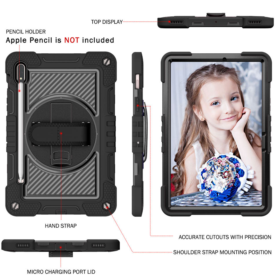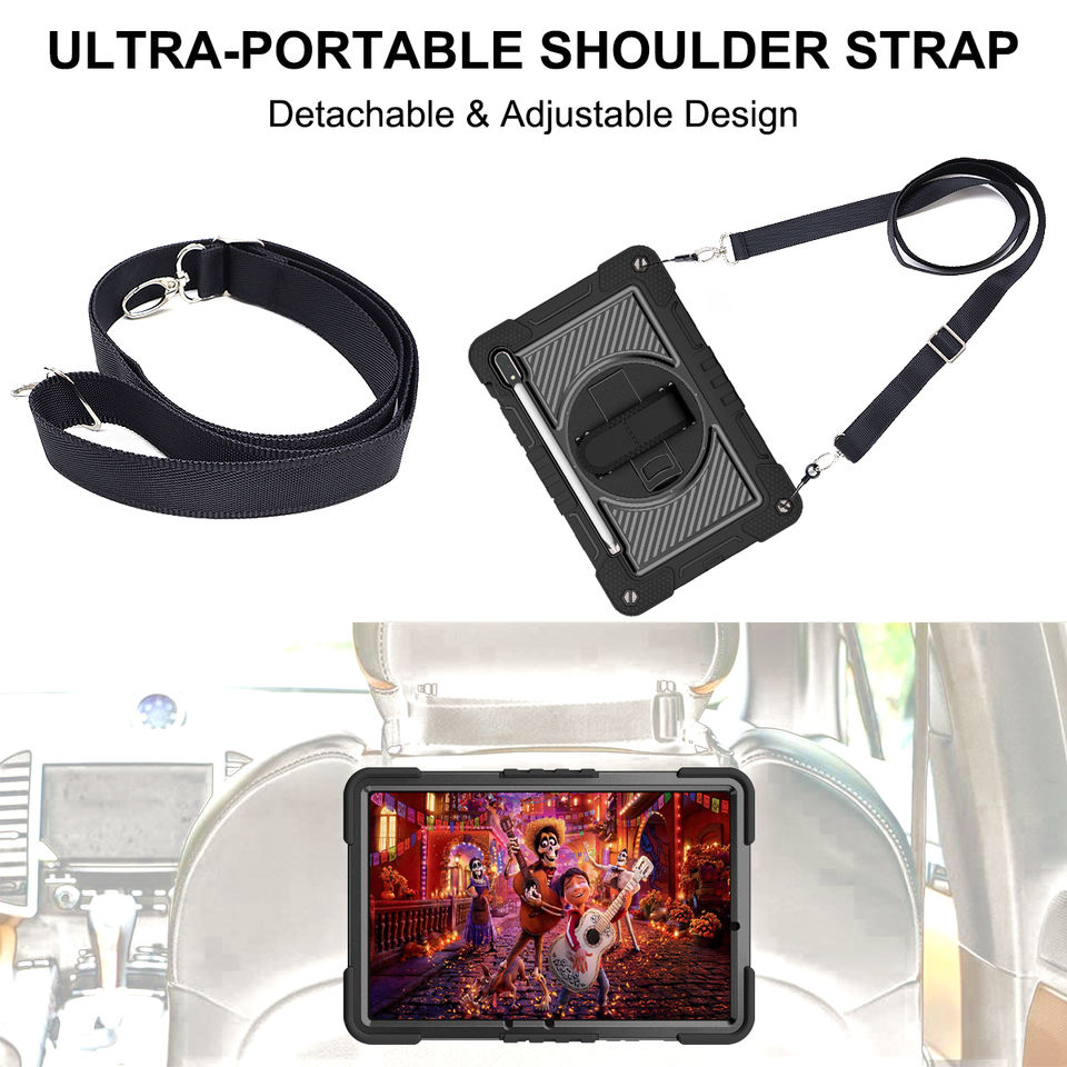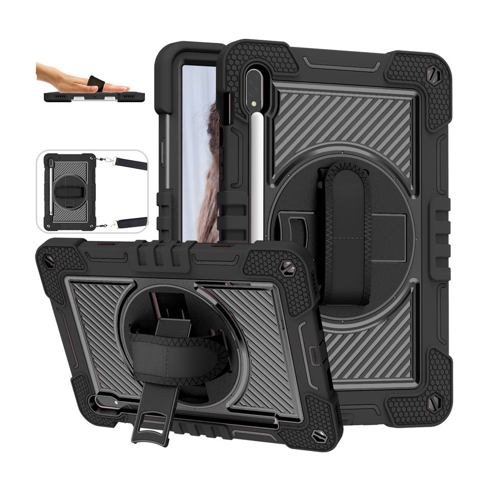 360 soporte giratorio correa de mano y correa de hombro resistente a prueba de golpes Funda para Samsung Galaxy Tab S7 S8 T870 T875
