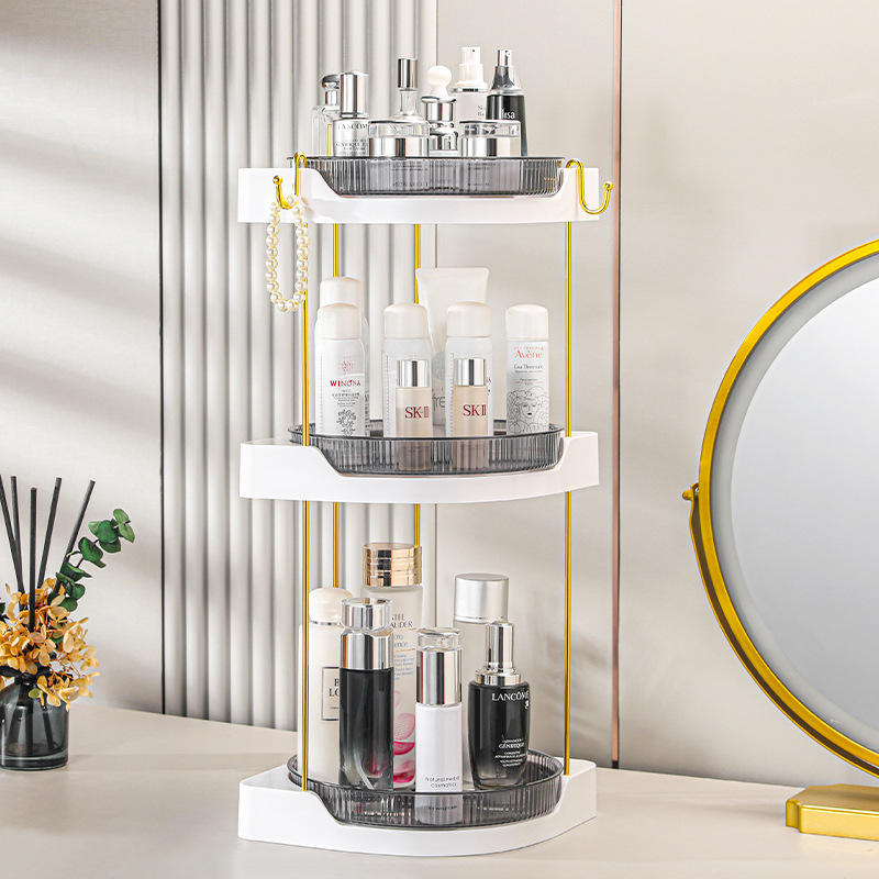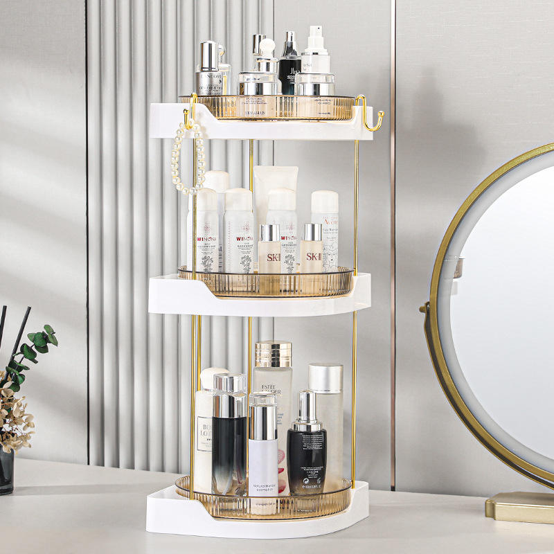 Estante de almacenamiento de esquina giratorio de 360 °-Organizador multicapa que ahorra espacio para baño y cocina