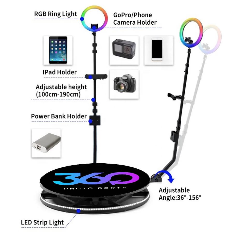 Plataforma Giratoria de 360 Grados, Cabina de Fotos de 100 cm, Máquina de Fotomatón para Negocios y Eventos de Boda con Impresión