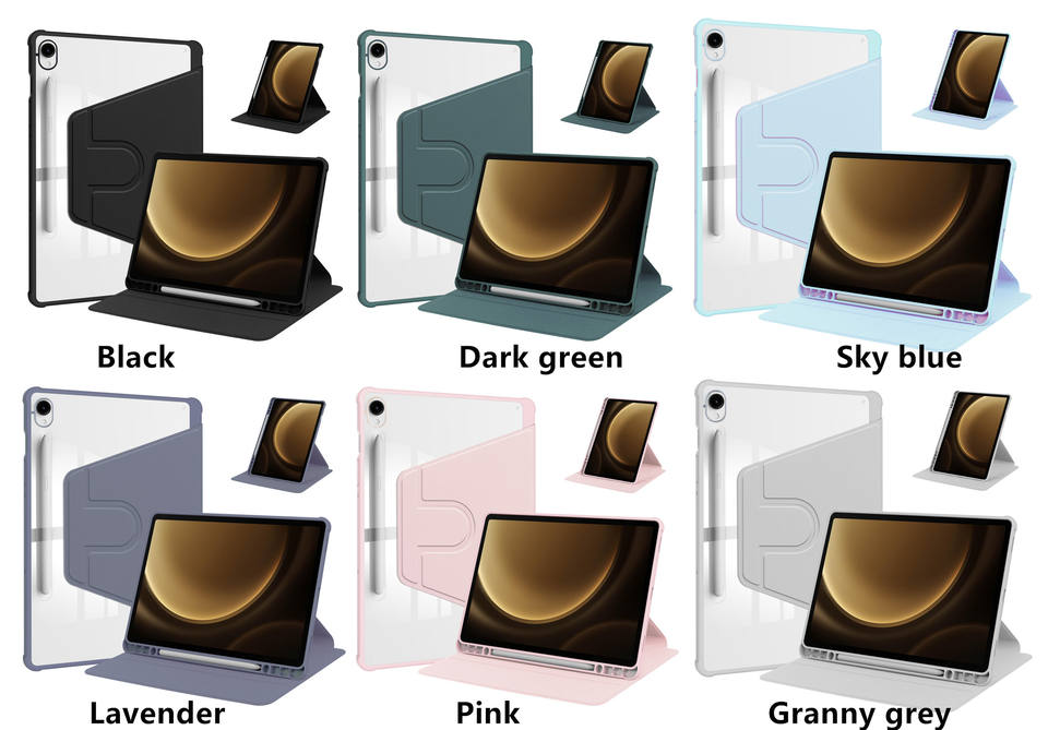 360 soporte giratorio Flip PU cuero acrílico transparente funda trasera para tableta para Samsung Galaxy Tab A8 A9 Plus S6 S9 S10 S11 FE Lite