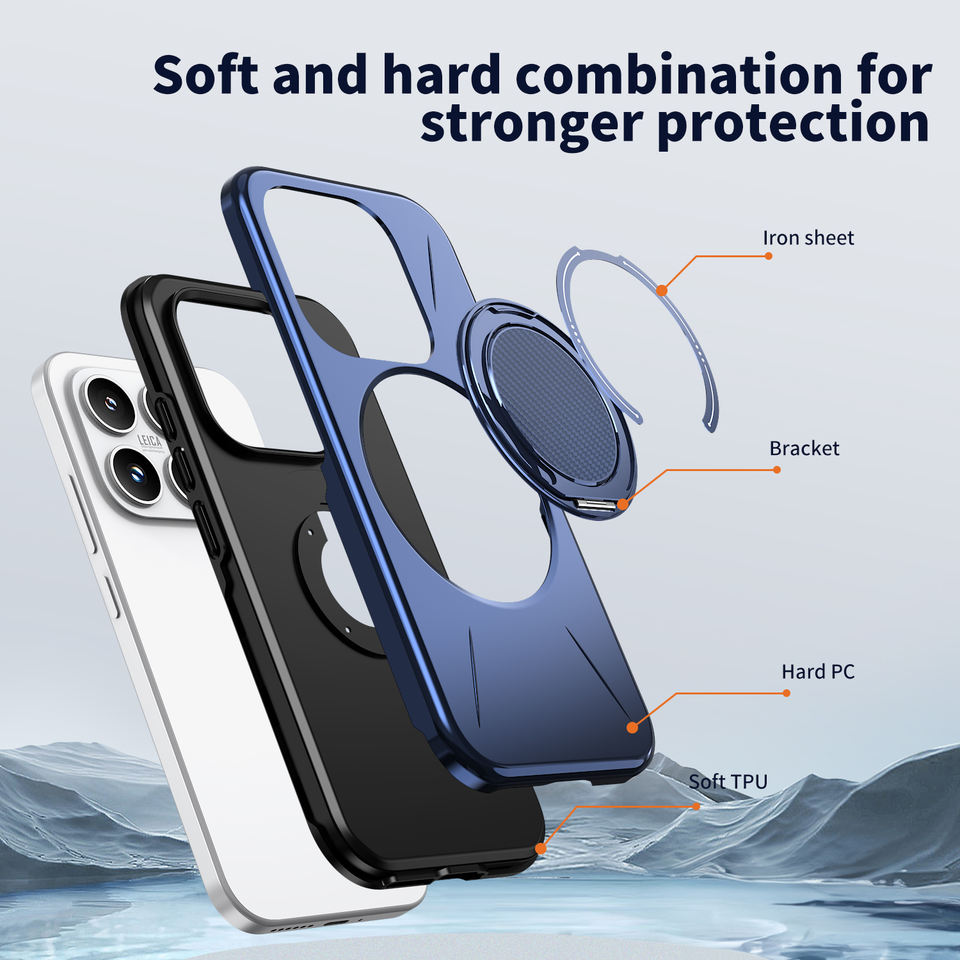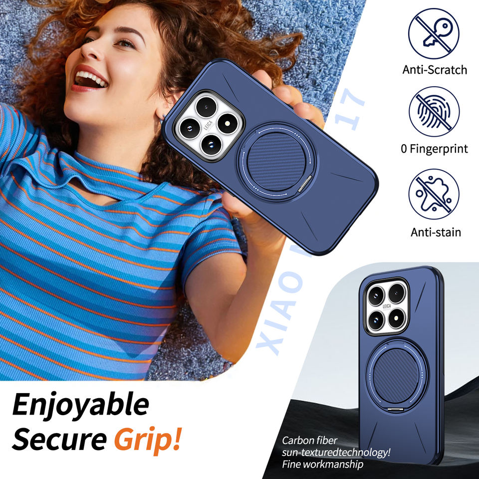 Fundas para Teléfono Móvil con Soporte Giratorio de 360 Grados para Xiaomi 17 Pro Max para Redmi Note 15 14 Pro Plus, Cubiertas de TPU con Lámina de Hierro de Fibra de Carbono