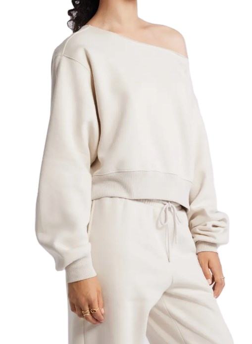 360 GSM 100% algodón de alta calidad para mujer, sudaderas con hombros descubiertos, manga larga, cuello ancho, estampado, sudadera de gran tamaño para mujer