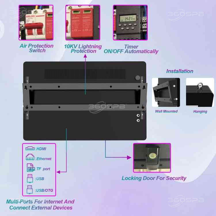 360SPB OWM55A Pantalla de señalización digital Pantalla táctil LCD interactiva para exteriores Quiosco de publicidad comercial Reproductor multimedia de video inteligente