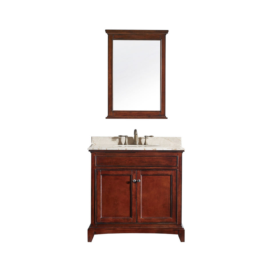 Mueble de Baño Transicional de 36 Pulgadas con Espejo de Madera y Diseño Resistente al Agua, Construcción Duradera, Lavabo Individual, Hecho en Vietnam