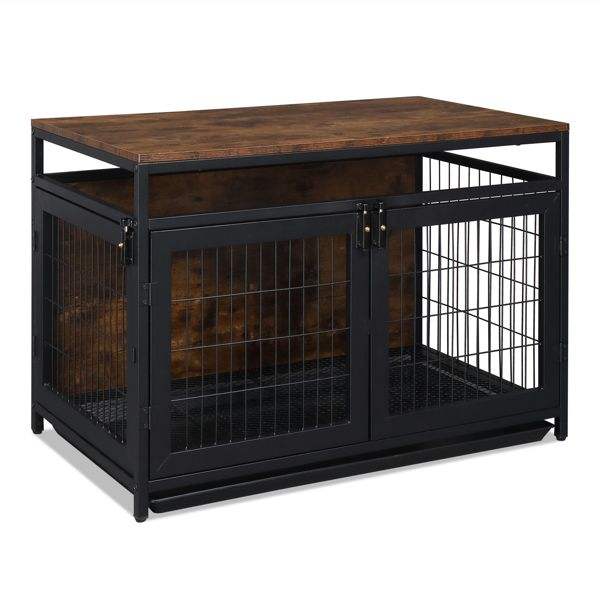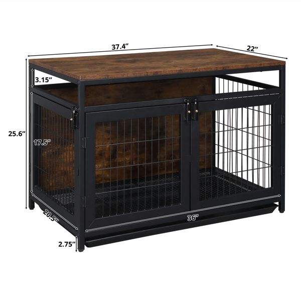 Jaula para Perros Súper Resistente de 37.4 Pulgadas para Perros Pequeños/Medianos, Mueble para Mascotas con Tres Puertas y Tres Cierres, Características Anti-Mordidas