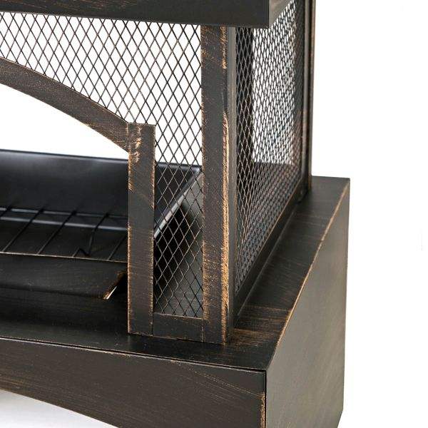 Chimenea Rectangular Metálica para Exteriores de 37 Pulgadas con Función de Leña, Almacenamiento de Leña Integrado, Bronce Cepillado