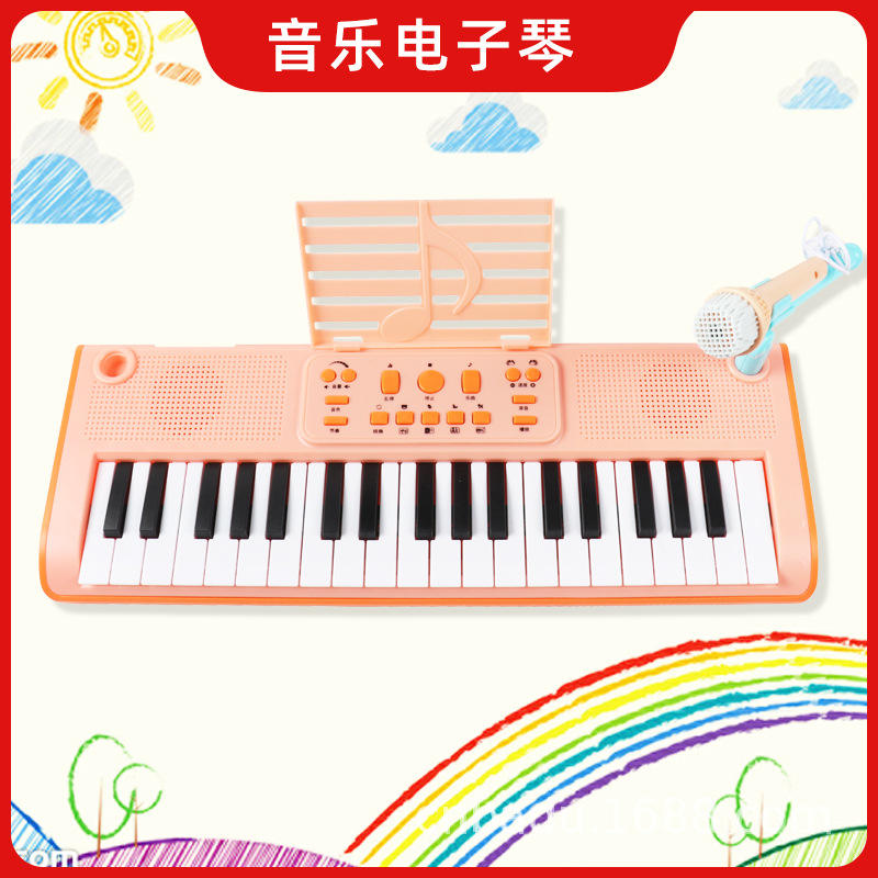Piano Electrónico Recargable de 37 Teclas con Micrófono para Niños Principiantes, Instrumento Musical de Juguete